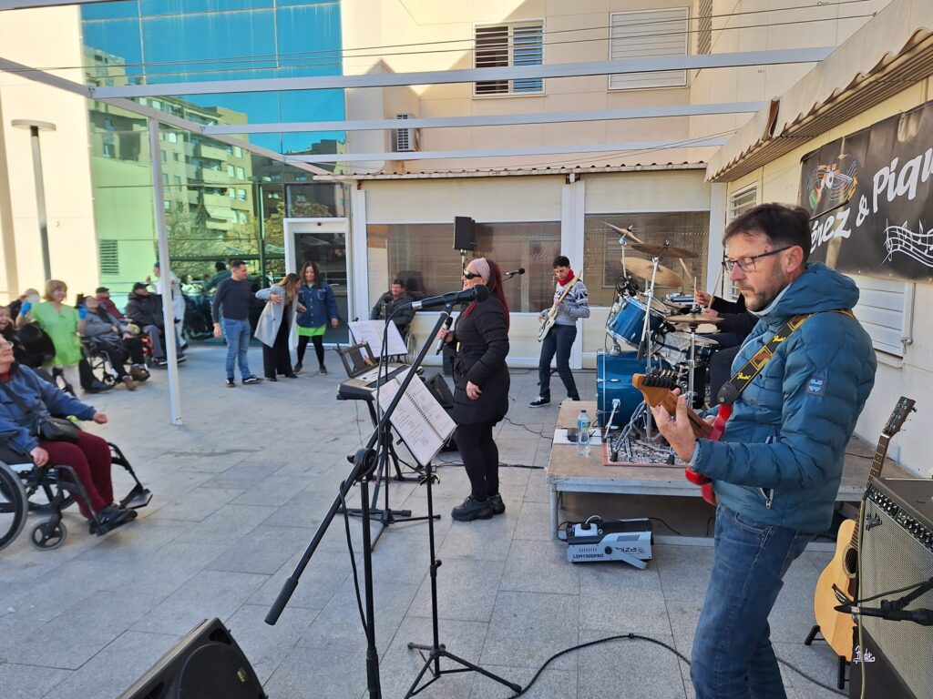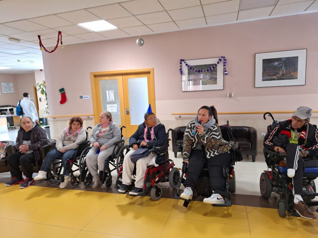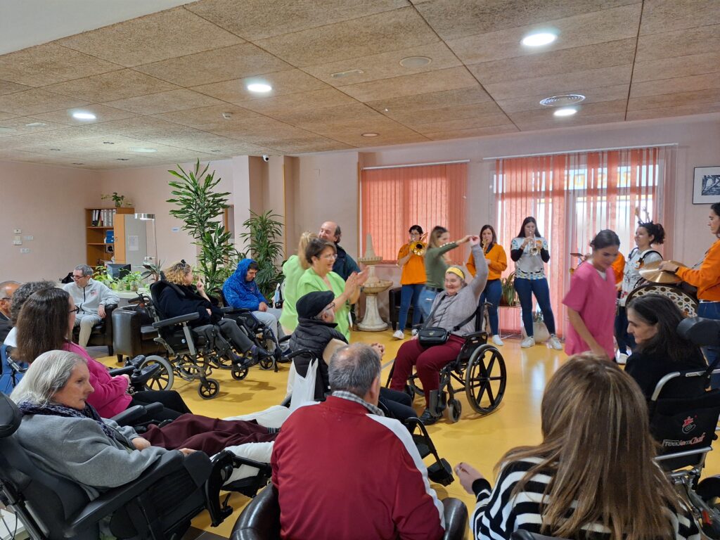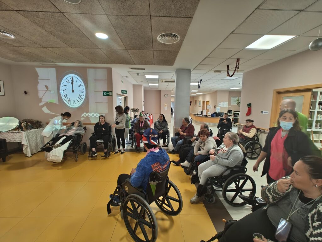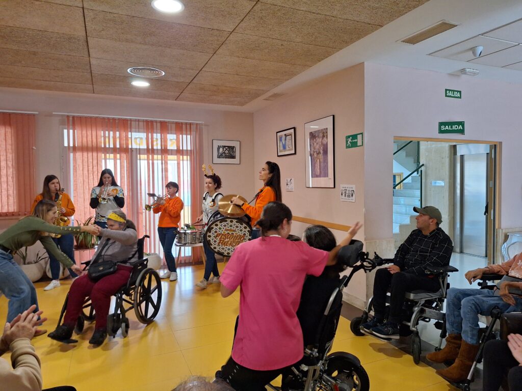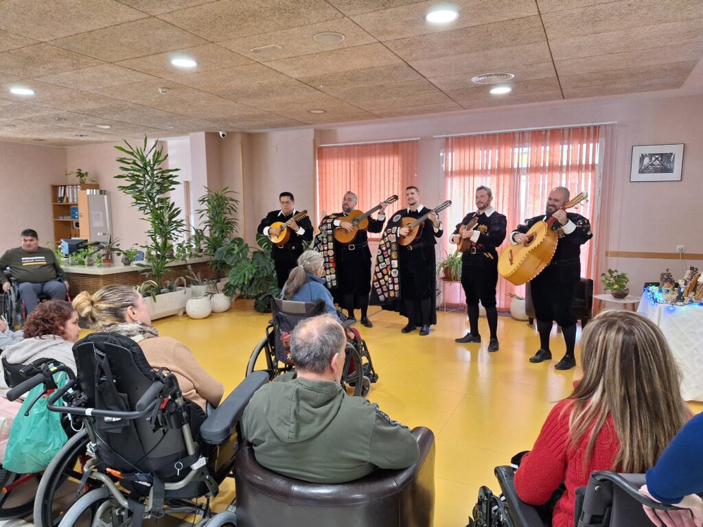 Desde mediados de diciembre a principios de enero, la Residencia Aspaym Granada ha sido un ir y venir constante de personas que han querido amenizar los días a nuestros/as residentes estas navidades. Hemos tenido el placer de disfrutar de la actuación flamenca de Alejo, Yanet y Antonio que nos introdujo de lleno en la Navidad con sus villancicos; de la Coral San Rogelio, que quisieron regalarnos un ratito de su tiempo y sus maravillosas voces; de la Charanga Pisando Fuerte, que un año más nos cargaron de alegría y vitalidad.