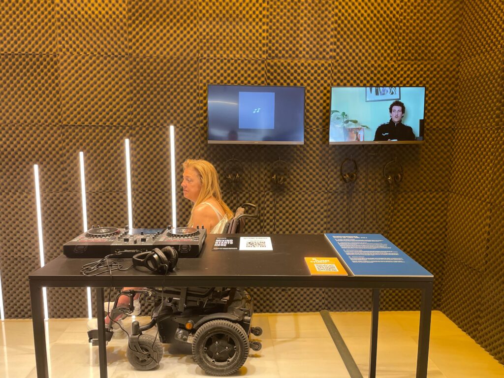 El pasado viernes 13, un grupo de usuarios/as de la Residencia tuvieron el privilegio de asistir a la inauguración de la exposición «El Home Studio. Tecnologías para democratizar la creación en un futuro electrónico» en el espacio Caja Sonora de CajaGranada Fundación.